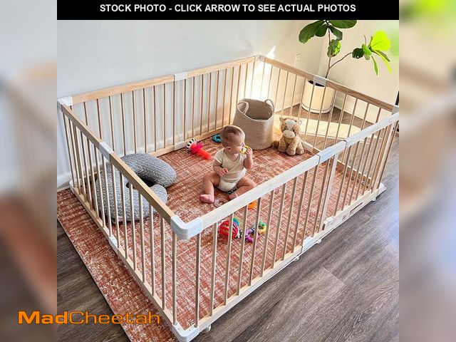 Lot 74-12563084 - HARPPA Wooden Baby Gate Playpen, Large Play Yard Fence for Toddlers, Adjustable Shape, 56" x 56" x 2...
